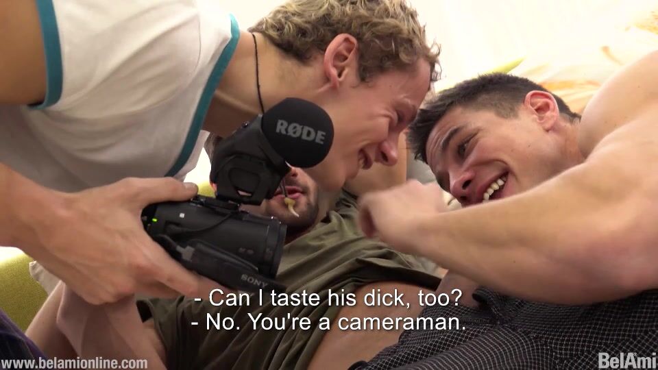 It sometimes happens that models cancel a shoot at the last minute, and that is just what happens to poor Pierre today. When Adam delivers his 'I have bad news, and bad news' statement, Pierre must think that he is being sent home with blue balls, after he had been saving himself for a week for this encounter. Lucky for him Adam is willing to sacrifice himself for the greater good and stand in for our missing model. Luke is our cameraman here, and he is training Jerome as 2nd cameraman (although it is evident that Jerome would still rather be in from of the camera this time).